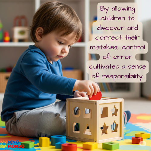 Control of error refers to the inherent design of Montessori theory that every material and activity must allow children to identify and correct their mistakes independently. These materials provide immediate feedback, empowering children to self-correct their errors and learn from their experiences.