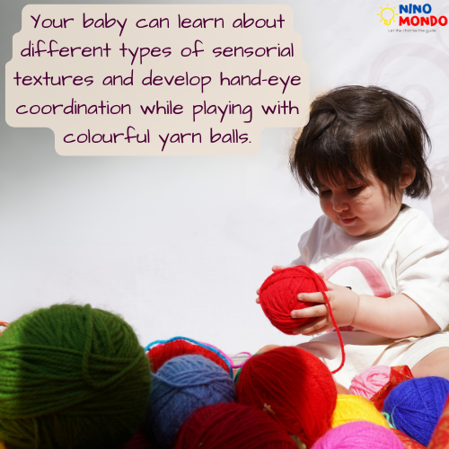 How it works - Colourful yarn balls make a tactile mobile that they can use to discern gradations, and textured balls teach your baby about different types of sensorial textures and hand-eye coordination while playing with them.