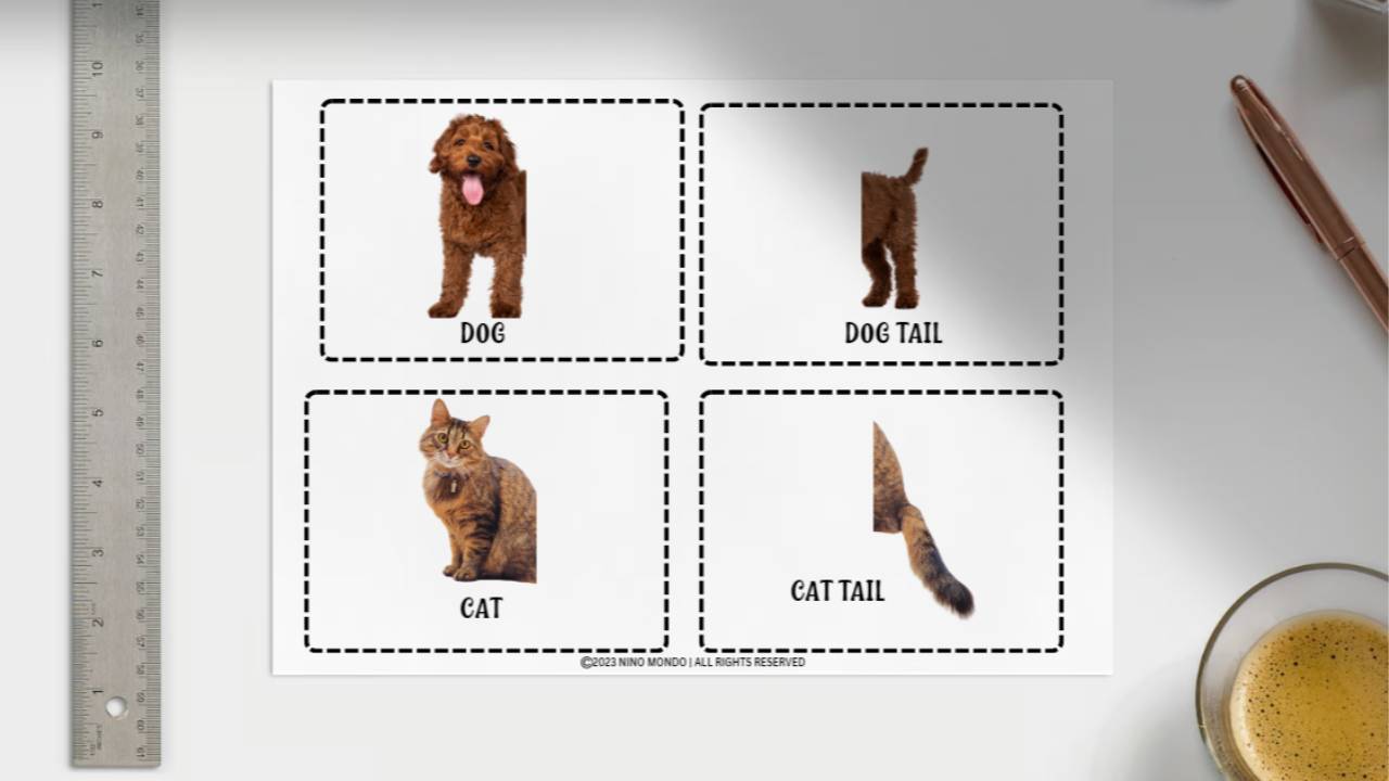 Our Animals Matching Card Printable comes with beautifully designed cards featuring colorful and detailed illustrations of different animal heads and tails.