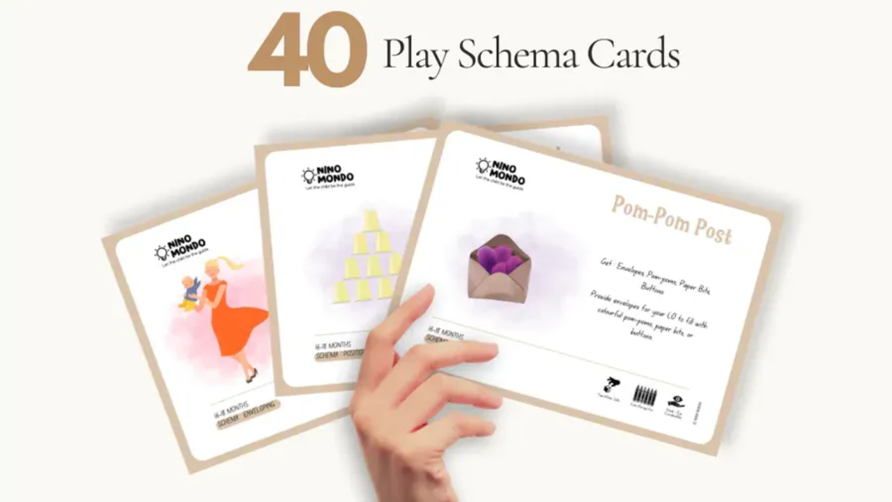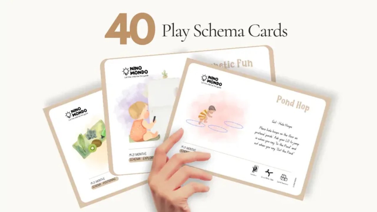 Your little one is no longer just a toddler—they’re a budding explorer with a growing understanding of the world around them, eager to discover new things and test their emerging skills. At this age, your child is developing a unique personality, full of curiosity and the first glimmers of independence. You may even catch them understanding basic concepts like counting or sorting colors. That’s where Nino Mondo Play Schema Cards come in. Play schemas are essentially patterns of behavior that children exhibit as they explore and learn about the world around them. They are like mental blueprints that help children make sense of their experiences . Our Play Schema supporting activities for ages 22+ months not only entertain but also stimulate fine and gross motor skills, language development, problem-solving, and creativity. From sensory play to imaginative adventures, these activities are perfect for those curious minds. Gain access to 40 beautifully designed digital cards aligned to support the neurological schemas your child is likely to display in this quarter. Simply download it on your phone, and you are ready to play. This set includes 40 Digital Play Schema Cards, Instruction Cards. Every Card Detail: The schema that the activity supports, An activity to support the schema, Things you will need for the activity, Skills that can be developed by the activity